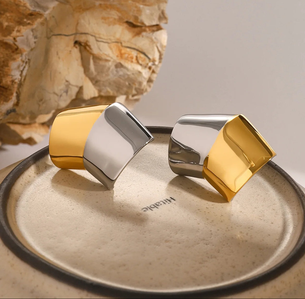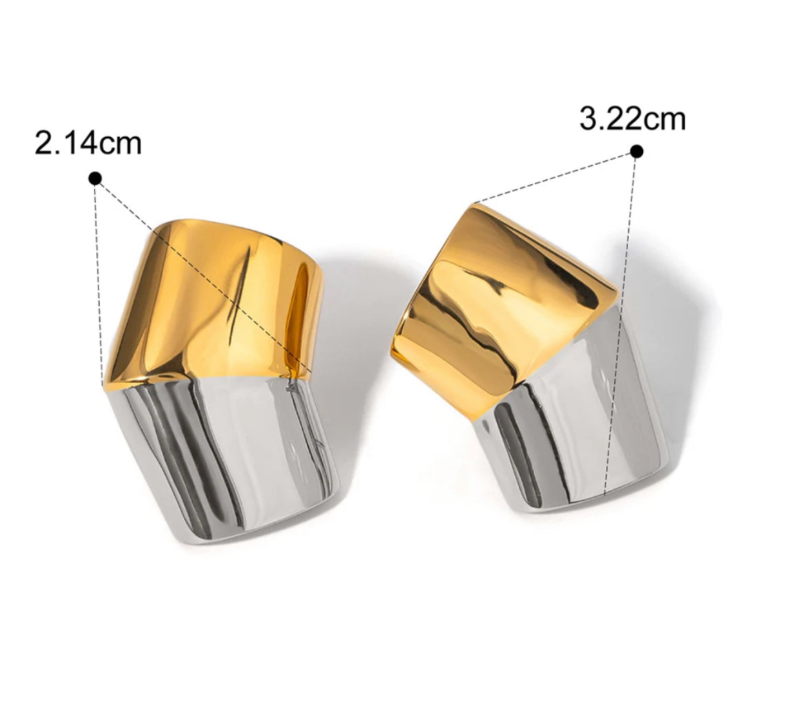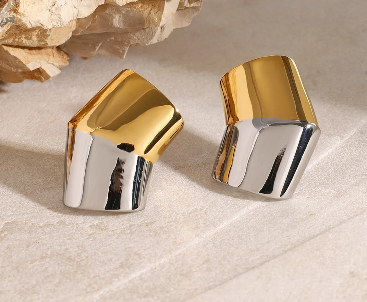 Get ready to add some playful quirkiness to your jewelry collection with the ELISE Studs! These 18K gold plated studs feature a unique two tone design, featuring a fun earcuff and classic studs. With a touch of luxury and a touch of trendiness, these studs are perfect for any occasion.