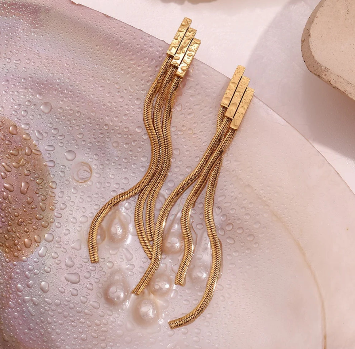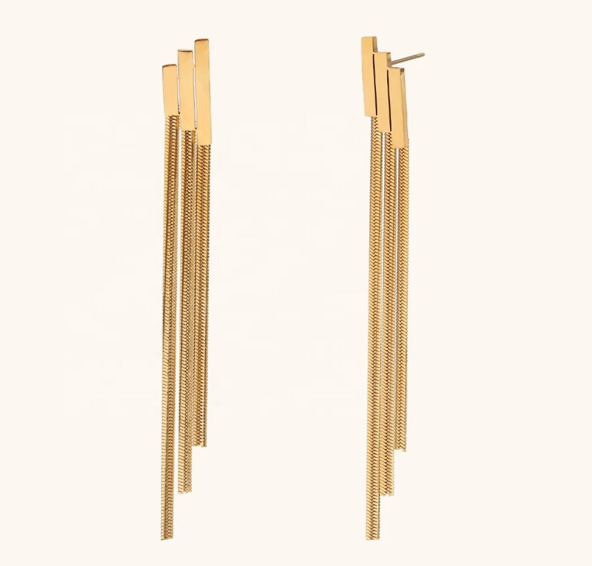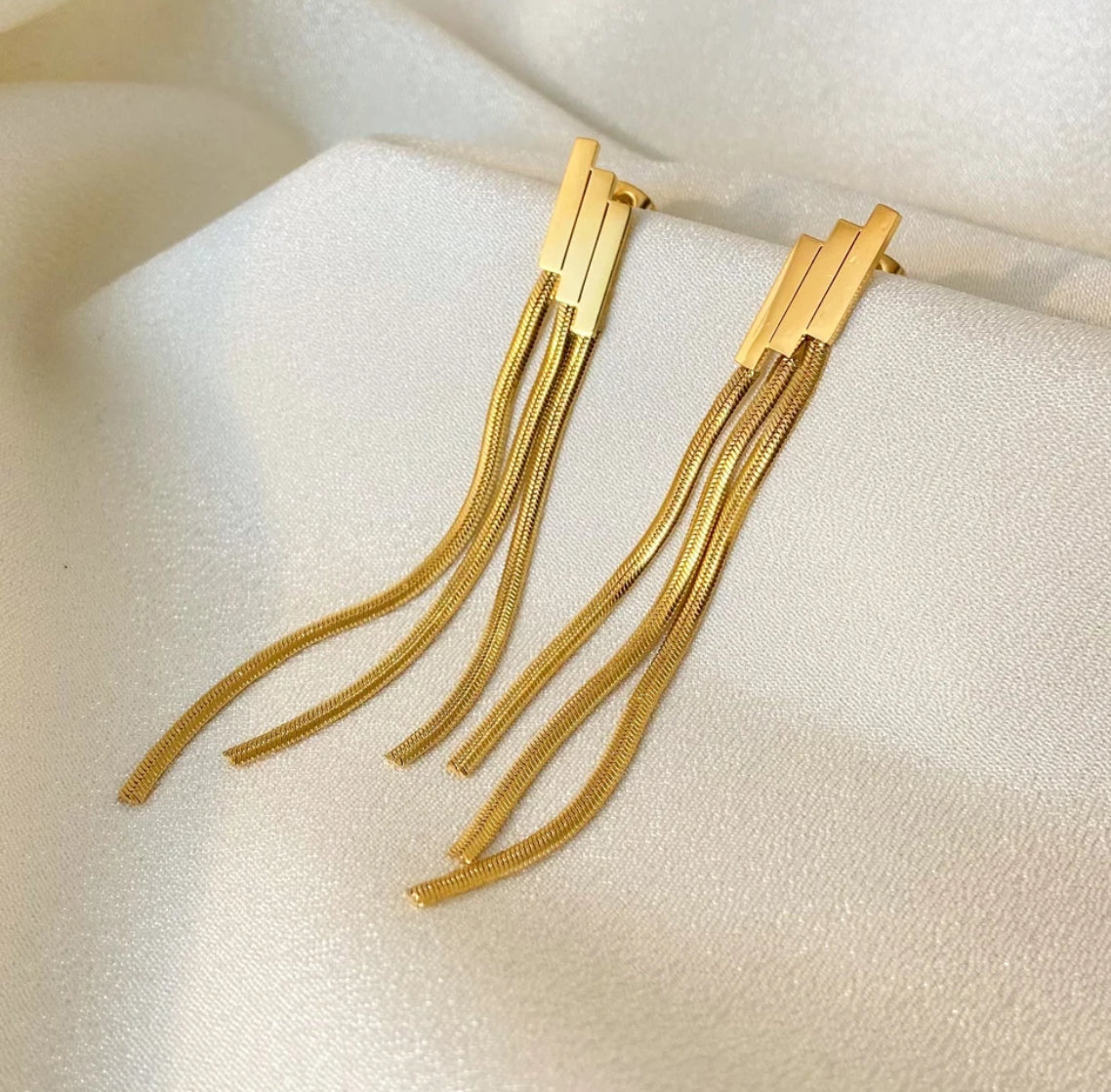 Add a touch of elegance to your outfit with the GIA Tassel Chain Earring. Crafted with 18k posted stainless steel, these earrings are both durable and stylish. Enhance your look with the intricate chain design and unique tassel detail. Perfect for any occasion, these earrings are a timeless addition to your jewelry collection.