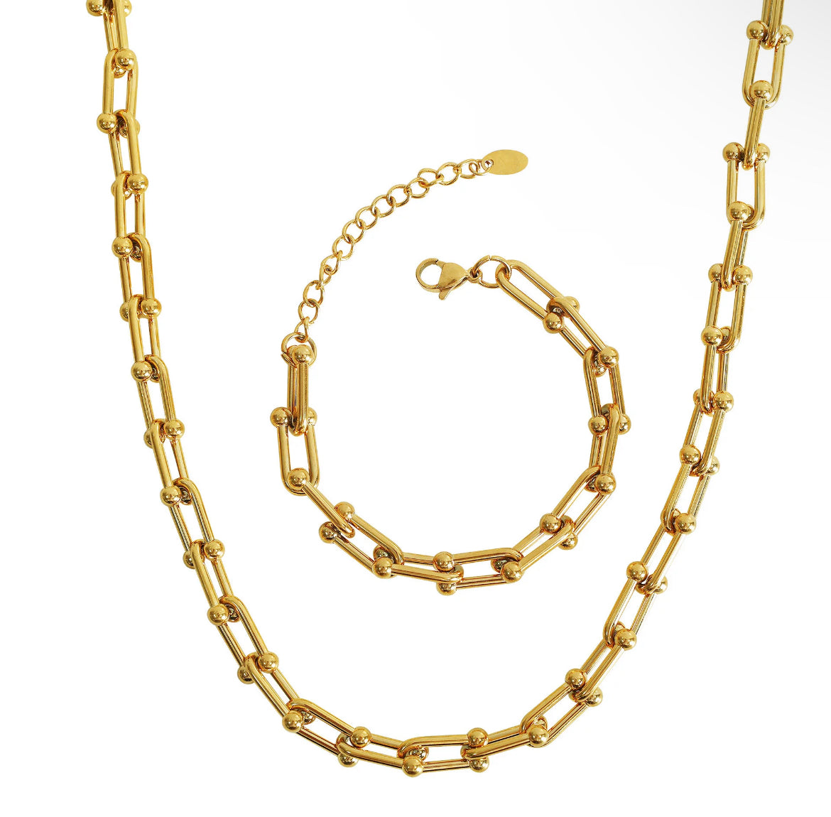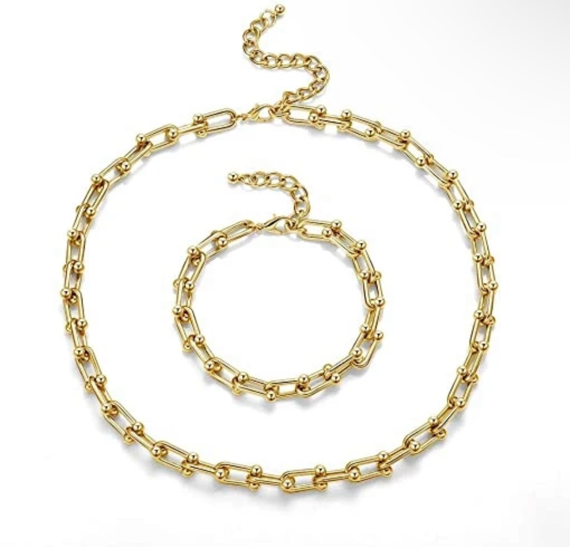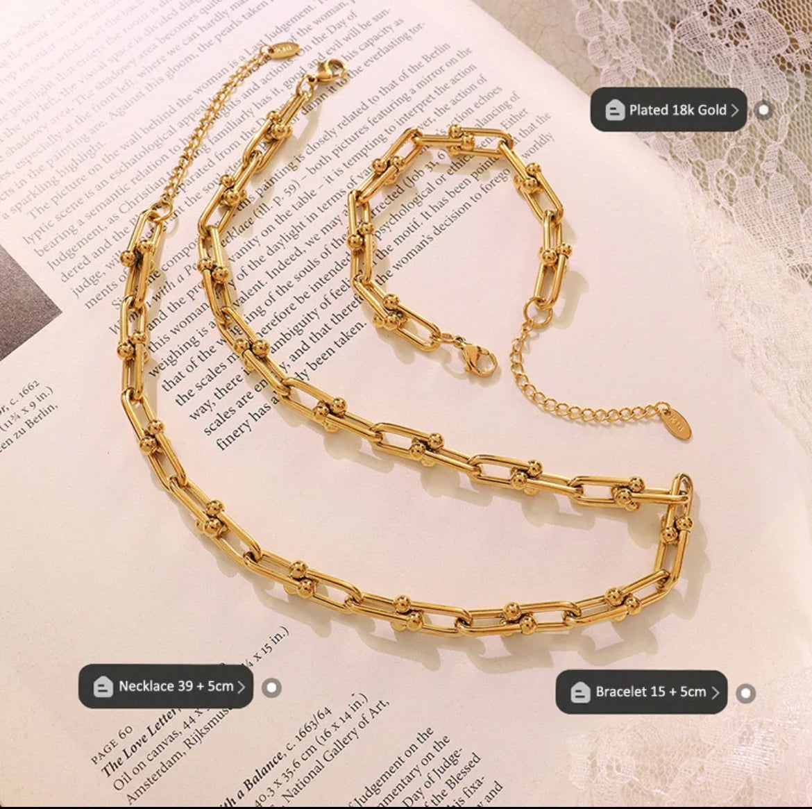 This elegant GIANNA necklace and matching bracelet set are perfect for adding a touch of sophistication to any outfit. Made with high quality materials, these accessories are durable and timeless. Complete your look with this stunning set and elevate your style game.