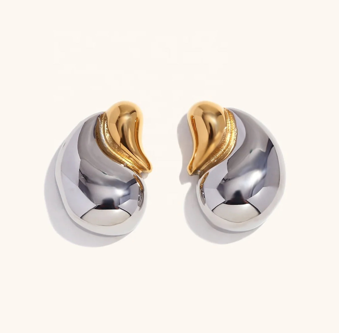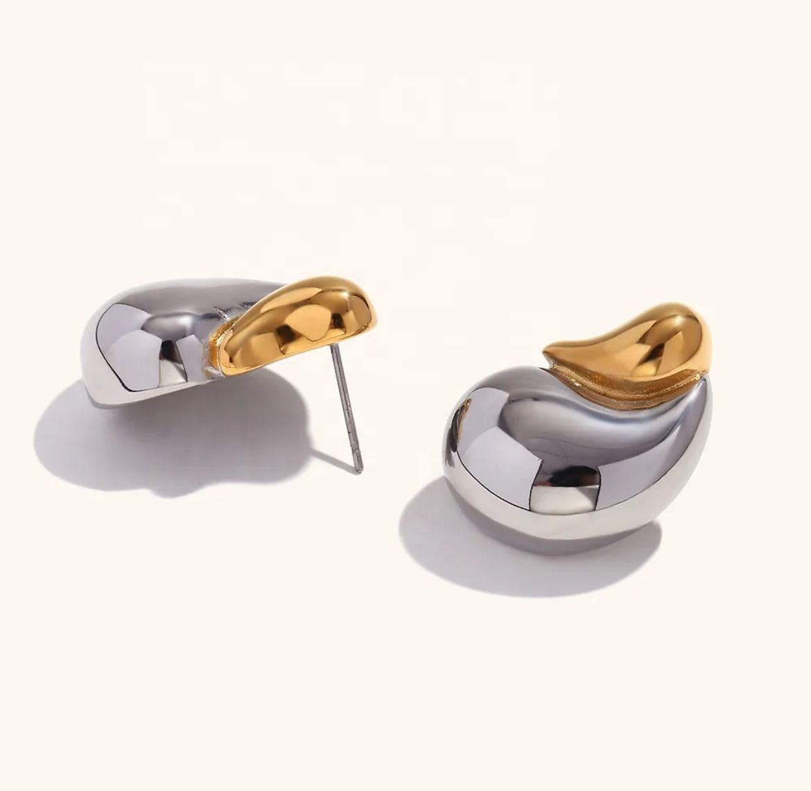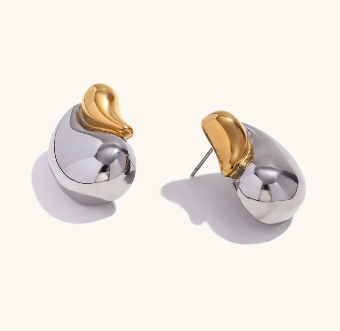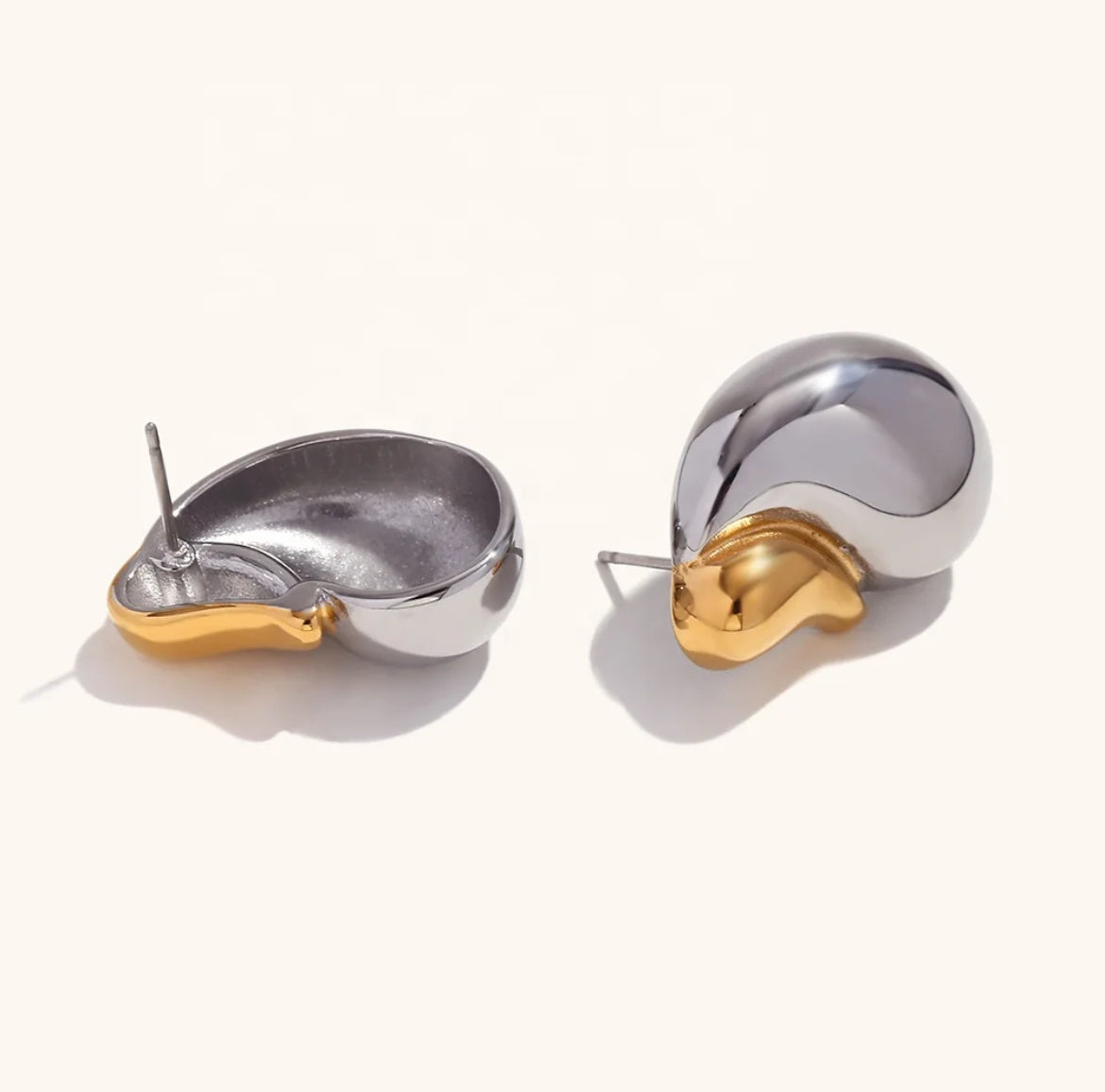 Spice up your style with LUNA Two Tone Studs! These 18k plated stainless steel studs add a playful touch to any outfit. The unique two-tone design adds a little something extra to your everyday look. Upgrade your accessory game with these quirky studs.