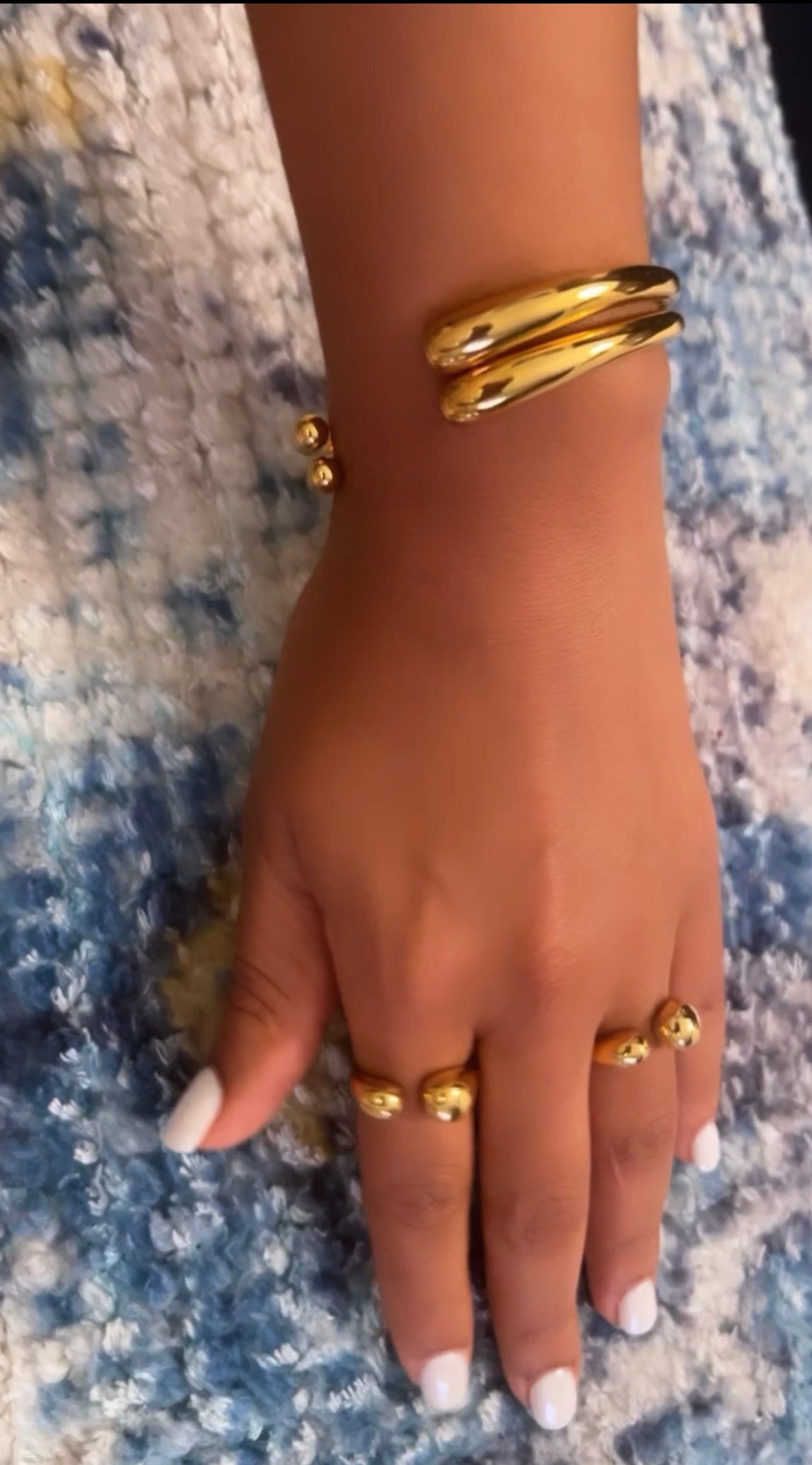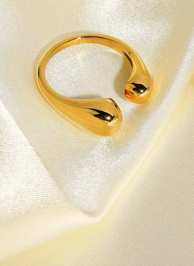 MAKI 18k Gold Plated Stainless Steel Cuff Bracelets and Adjustable Matching Rings
