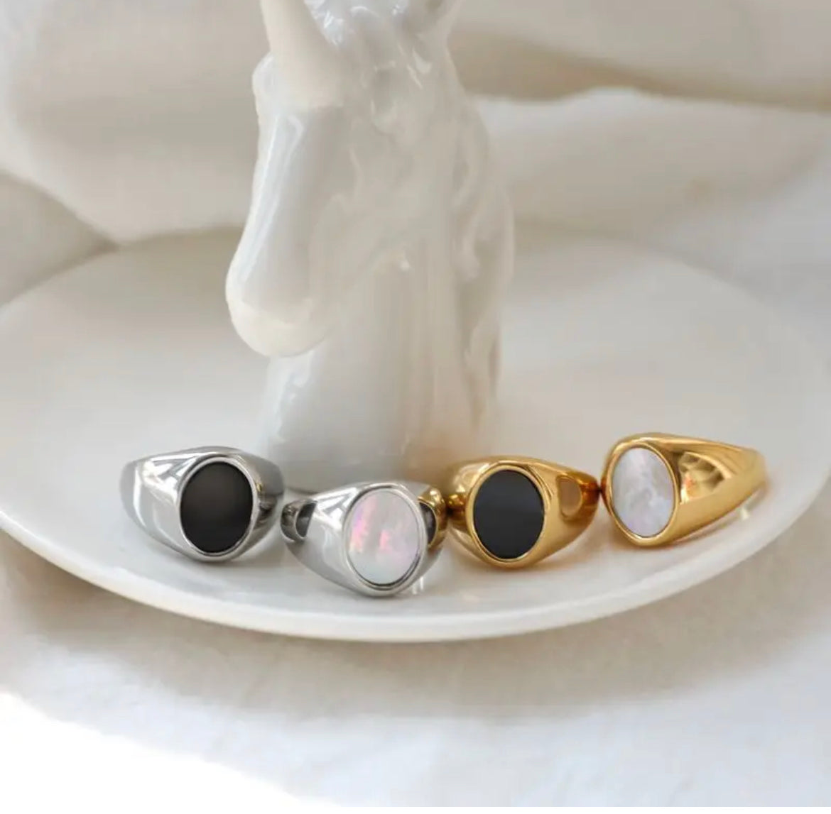 MEKII Rings are crafted from 18K gold-plated stainless steel and silver plated. Their classic and timeless shape makes them versatile enough for any occasion. The luxurious gold plating ensures a long-lasting shine and an extra touch of elegance.