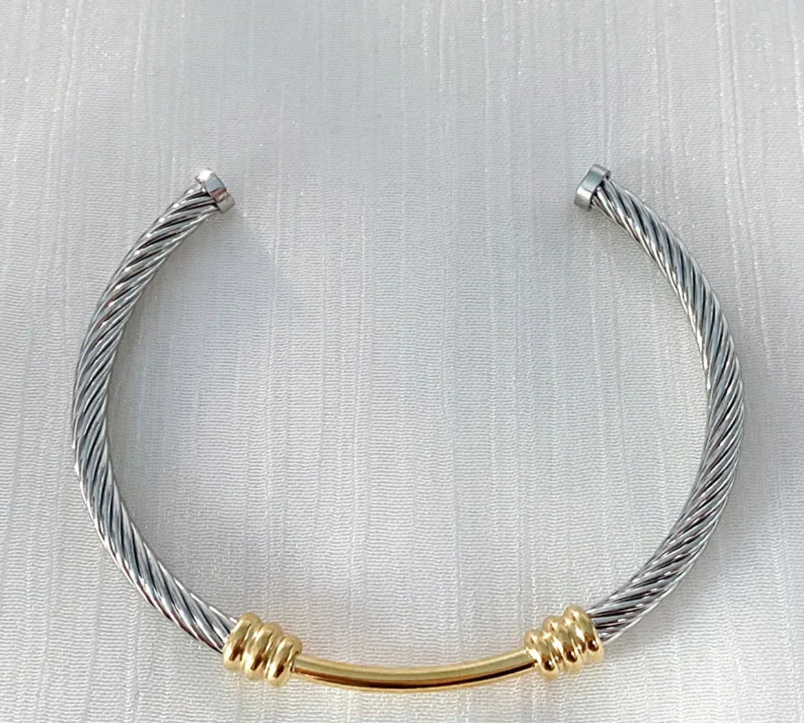 NORI CABLE CUFF TW0 -TONE STAINLESS STEEL GOLD PLATED