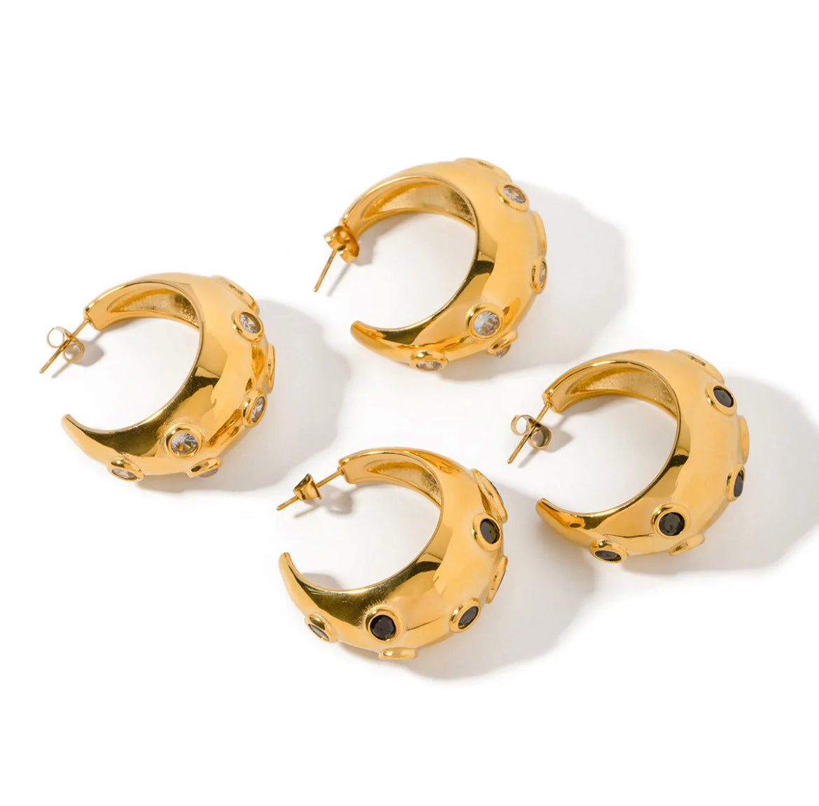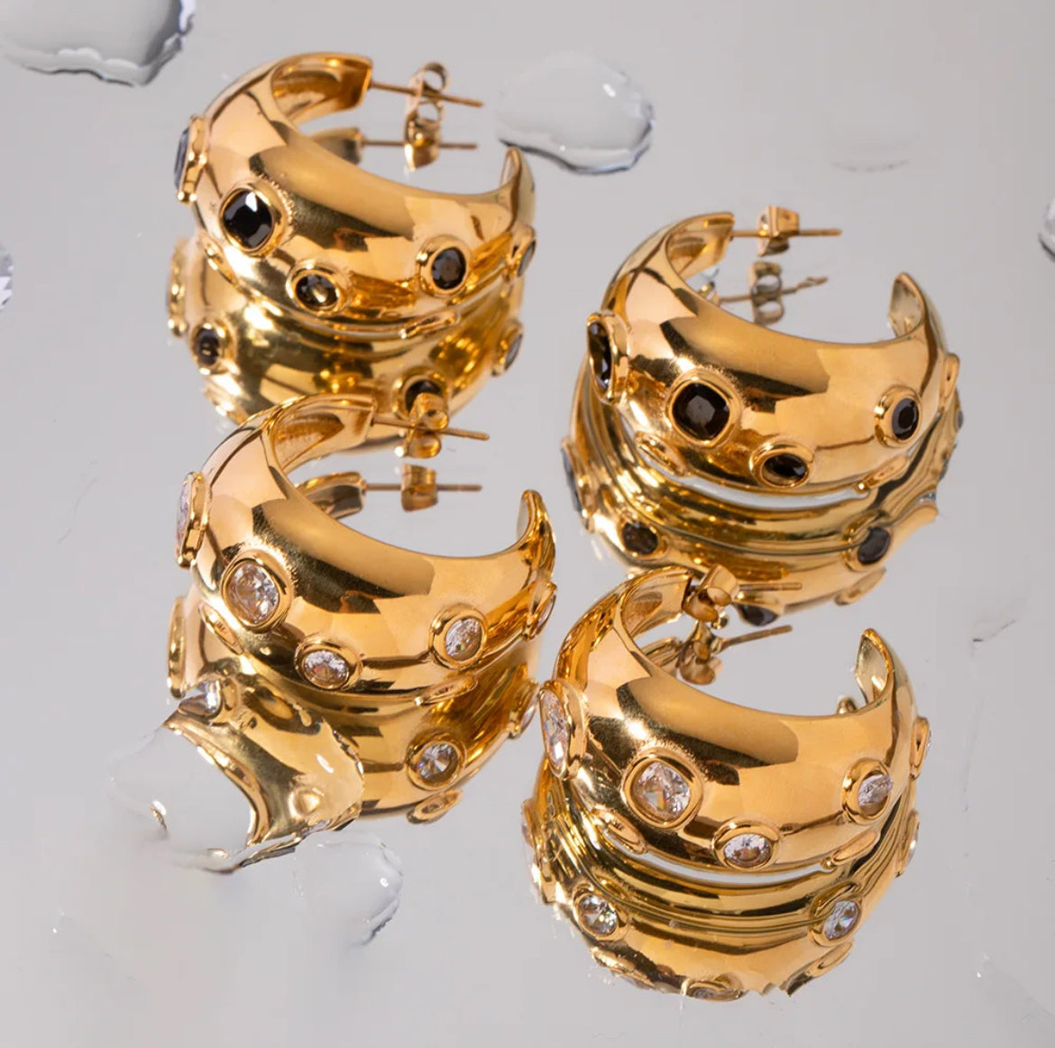 Crafted with precision and expertise, the SARI Hoops exude elegance and durability. Made from 18k gold plated stainless steel, these hoops offer a timeless and versatile addition to your jewelry collection. Experience the benefits of both style and quality with the SARI Hoops.