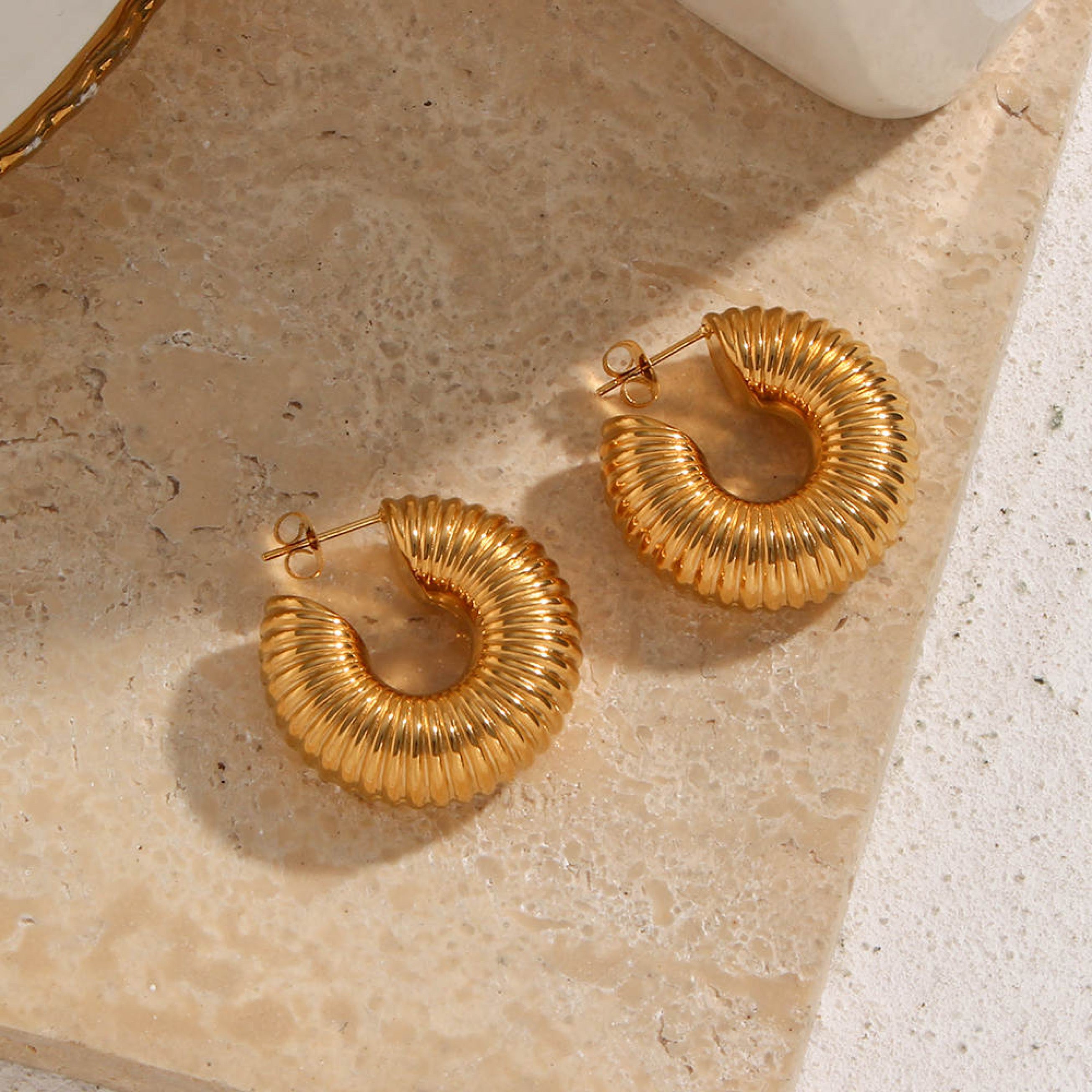 Look elegant and stylish with these Sarita hoop earrings. Crafted from 18k gold-plated stainless steel that is waterproof, the unique design is sure to make a statement. The perfect accessory for any outfit.